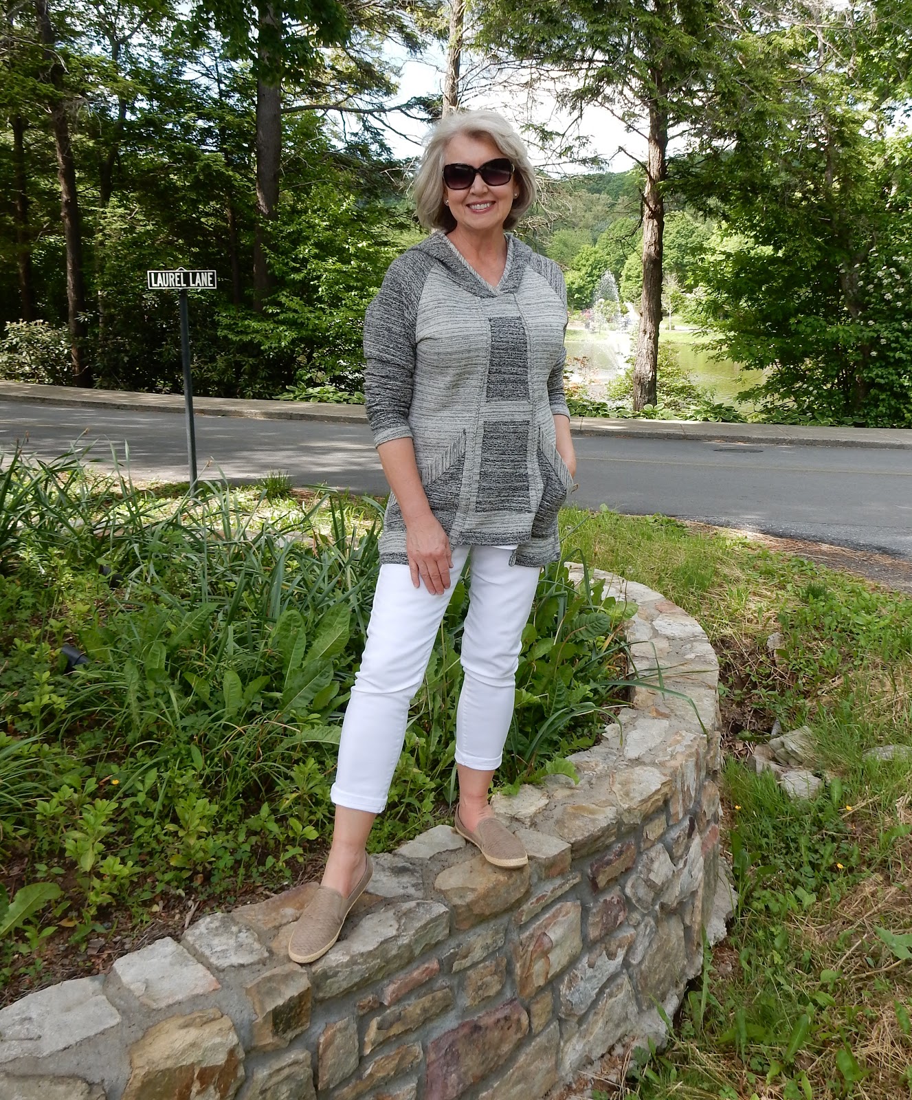 Even in summer, we often need a warmer jacket or hoodie here in the evenings. I love to wear this tunic by Barbara Keisman when our weather is unpredictable.
